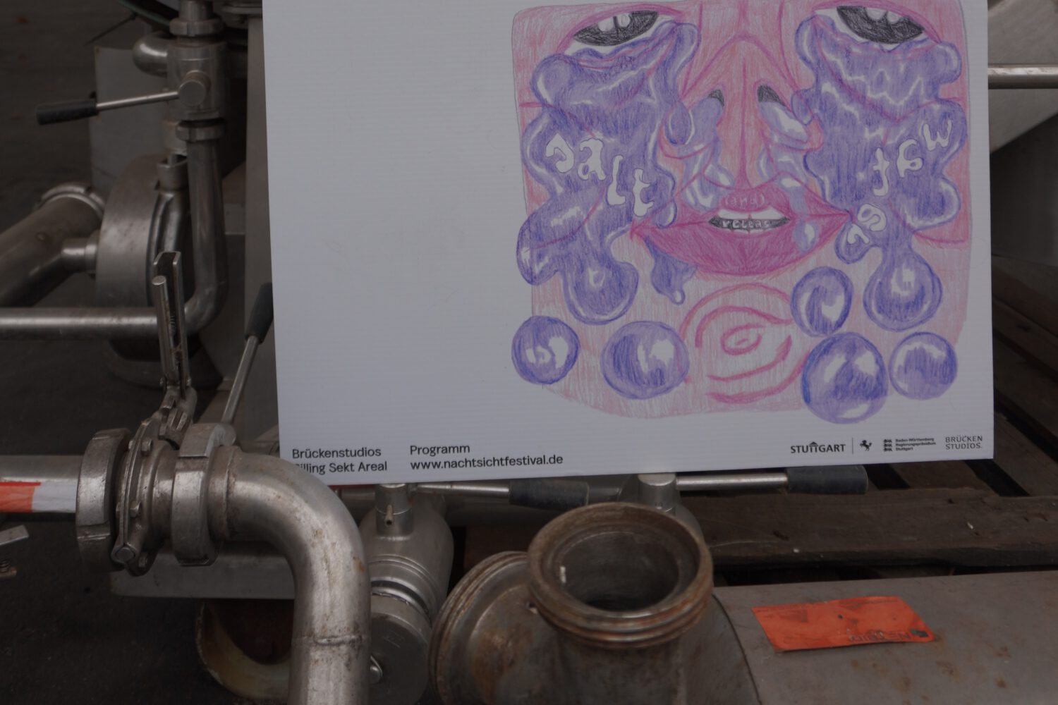 In der ehemaligen Sektproduktion lässt die Künstlerin Sarai Rose Duke eine temporäre Struktur entstehen. Ein schwebendes Modul reagiert auf Überreste vergangener Nutzung. Alte Prozesse werden aufgenommen, Spuren gelesen und in neue Abläufe übersetzt. Der Raum wird Teil des Geschehens, sein rhythmischer Klang lässt ahnen, dass unter der Oberfläche noch etwas arbeitet. Ein hydraulischer Puls drückt irgendwo Wasser sich durch die Rohre. Der Pavillon wird zum Ort der Verdichtung: Geschmack als Material, Raum als Zutat. Zwischen industrieller Vergangenheit und ungewisser Zukunft scheint der Ort weiterzuatmen.